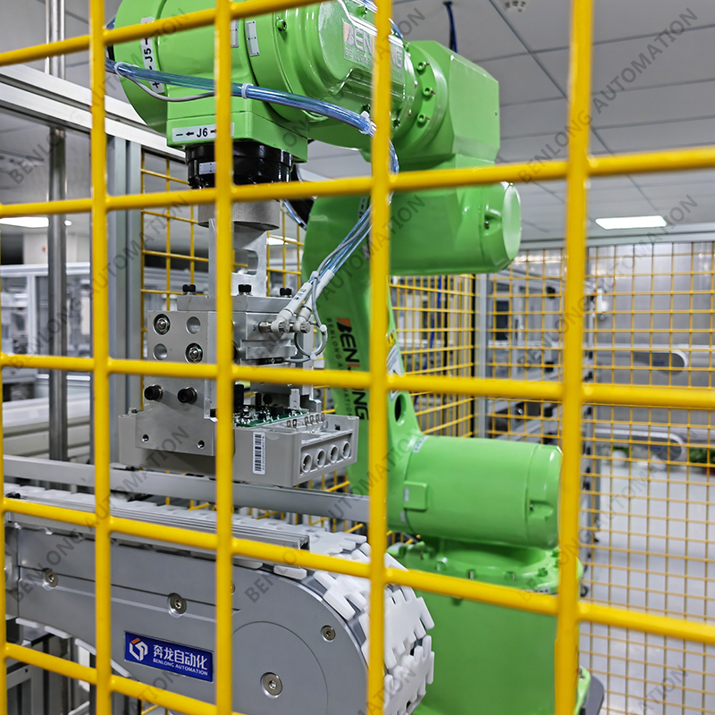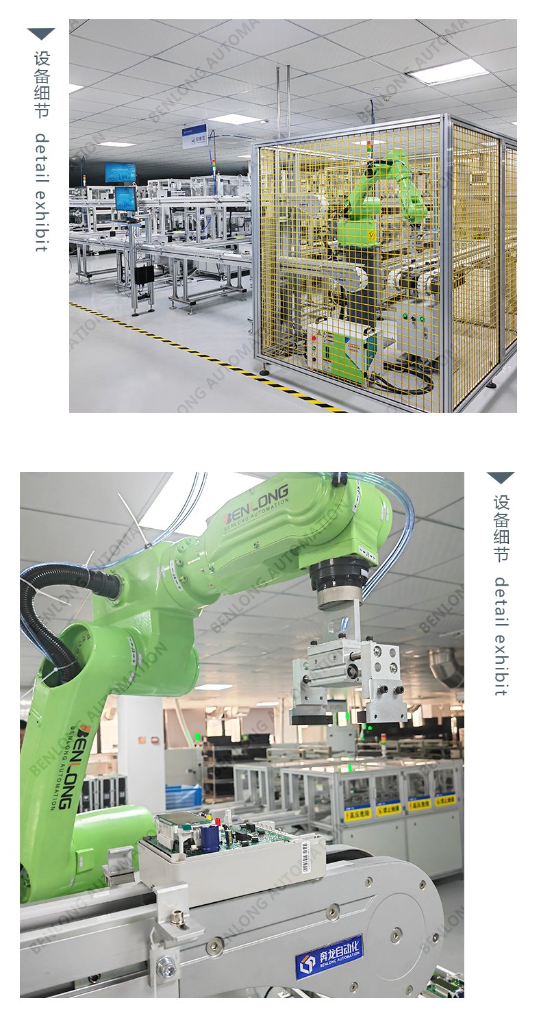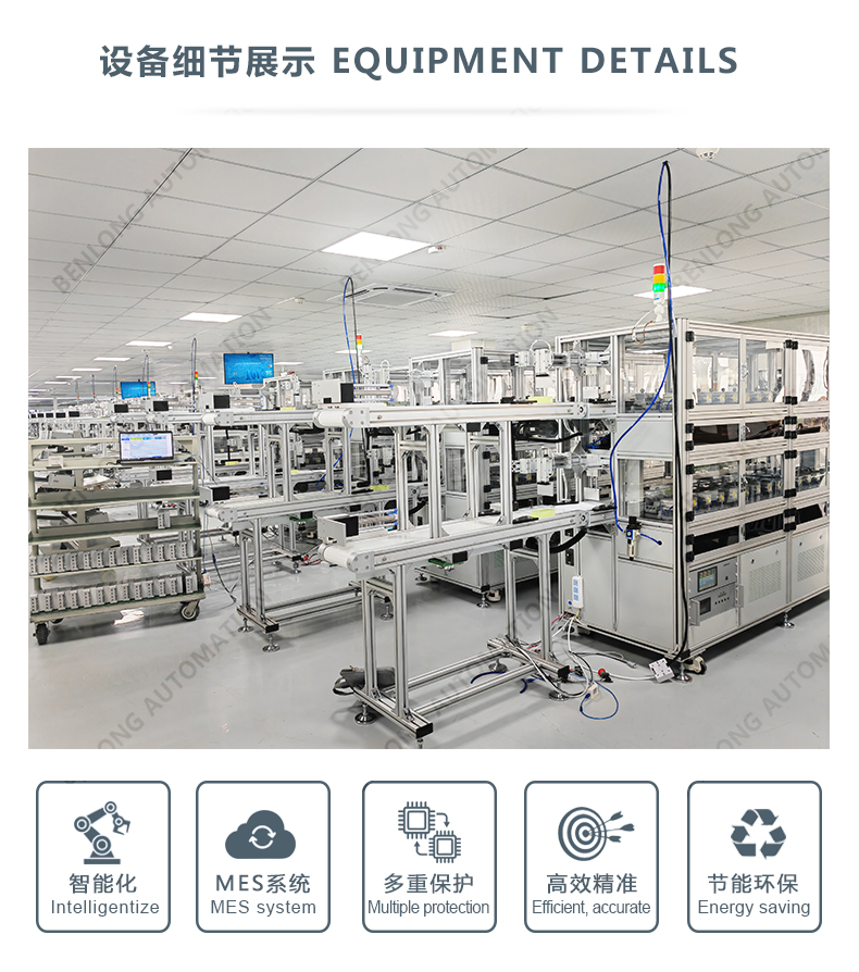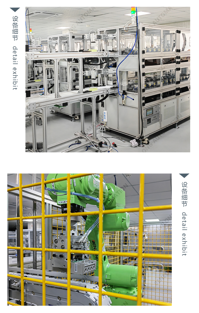 復(fù)校檢測、裝配銘牌、掃碼資產(chǎn)信息數(shù)據(jù)對比、合格不合格區(qū)分、包裝、碼垛、AGV物流、缺料報警等工序的裝配、在線檢測、