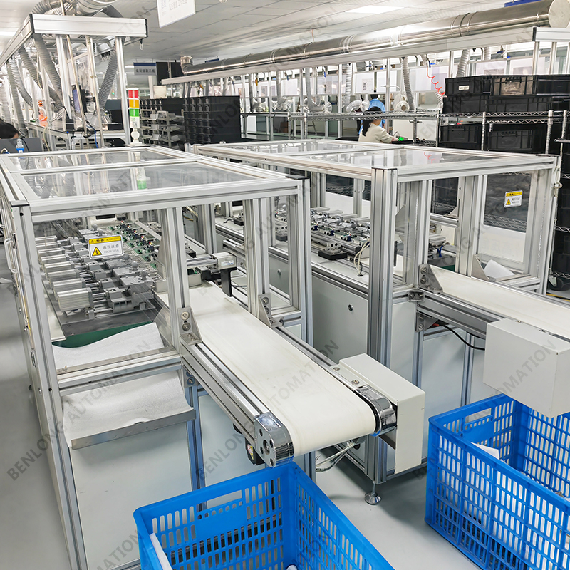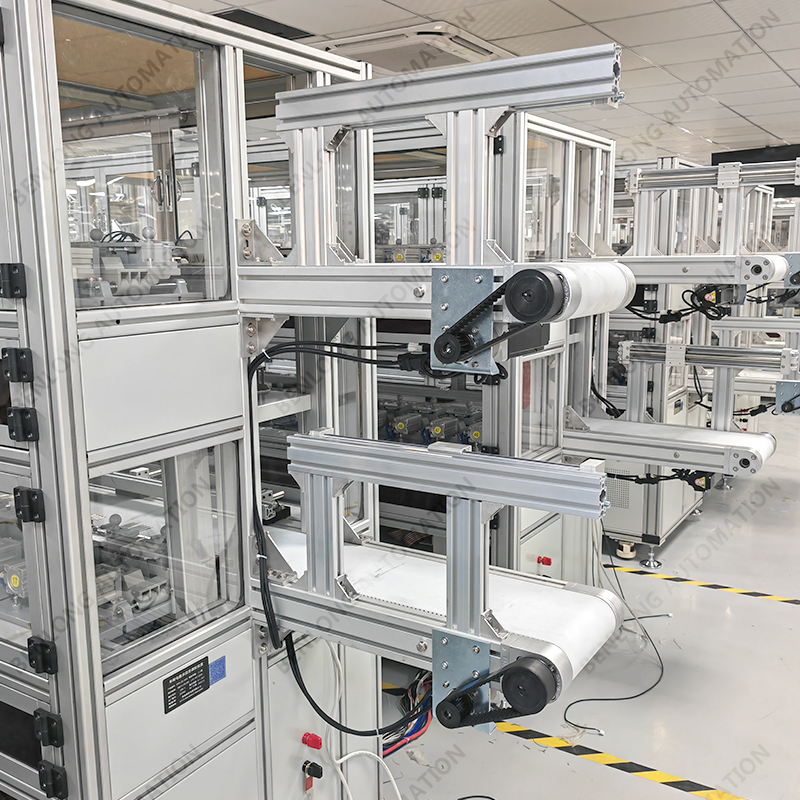 具有產(chǎn)品自動上料底座、裝配導(dǎo)電柱、裝配線路板、錫焊、鎖螺絲、裝配密封圈、裝配玻璃罩、裝配外圈、鎖螺絲、特性檢測、