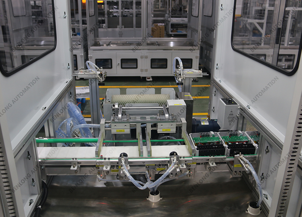 復校檢測、裝配銘牌、掃碼資產信息數據對比、合格不合格區(qū)分、包裝、碼垛、AGV物流、缺料報警等工序的裝配、在線檢測、