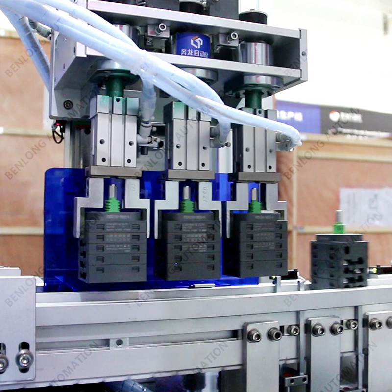 具有產(chǎn)品機器人自動上料、動觸架裝配、靜觸片鎖螺絲、底座基座壓裝磁鐵、左基座組件裝配、右基座組件