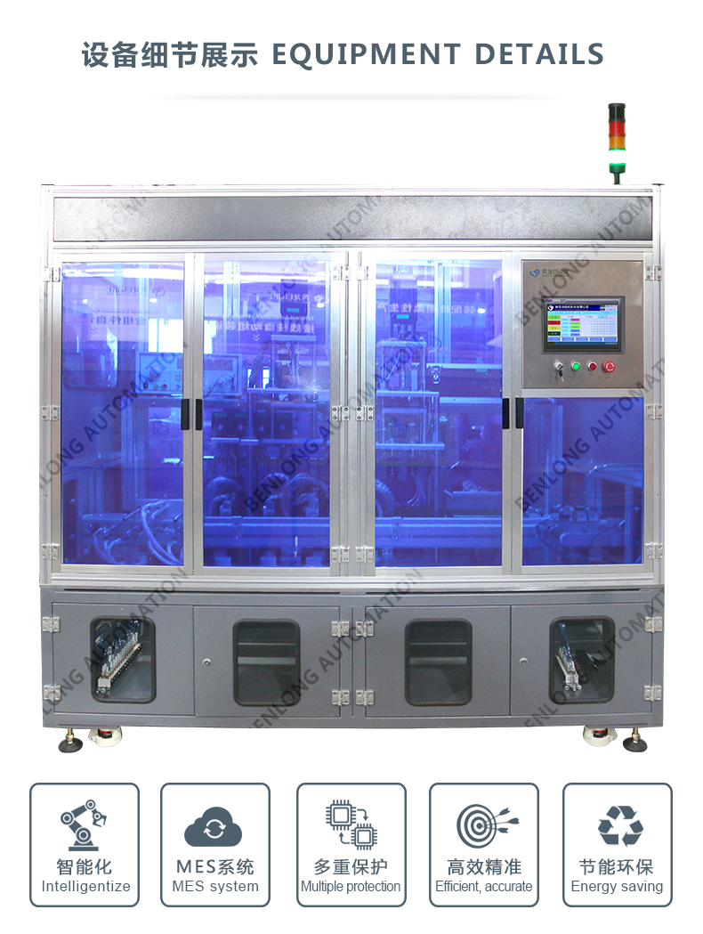 通斷、手柄合閘扭力、耐壓、回路電阻、氣密性檢測、移印、激光標刻、CCD外觀檢測、合格不合格區(qū)分、包裝、碼
