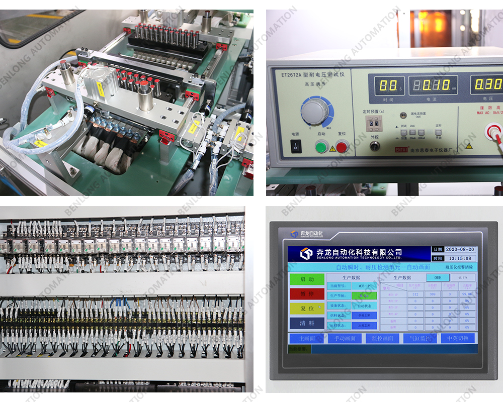 具有自動(dòng)掃碼/讀碼、低倍檢測(cè)、高倍檢測(cè)、CCD觀察窗顏色檢測(cè)、內(nèi)跳外不跳、通斷檢測(cè)、耐壓檢測(cè)、不良品區(qū)分、缺料報(bào)警、