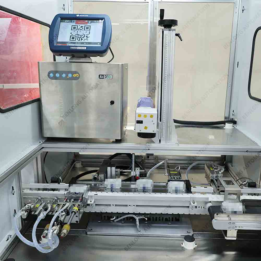 具有自動(dòng)上料、自動(dòng)激光打標(biāo)、自動(dòng)讀碼檢測(cè)、自動(dòng)下料、缺料報(bào)警、90°旋轉(zhuǎn)等工序的在線監(jiān)測(cè)、實(shí)時(shí)監(jiān)控、質(zhì)量溯源、條碼識(shí)別、關(guān)鍵元器件壽命監(jiān)測(cè)、數(shù)據(jù)存儲(chǔ)、MES系統(tǒng)