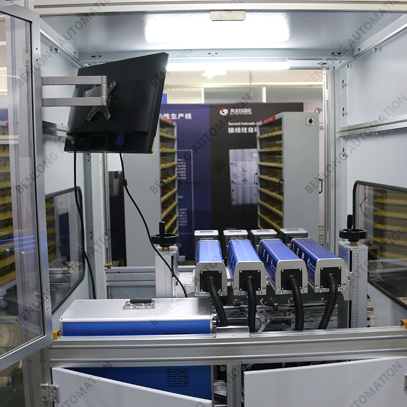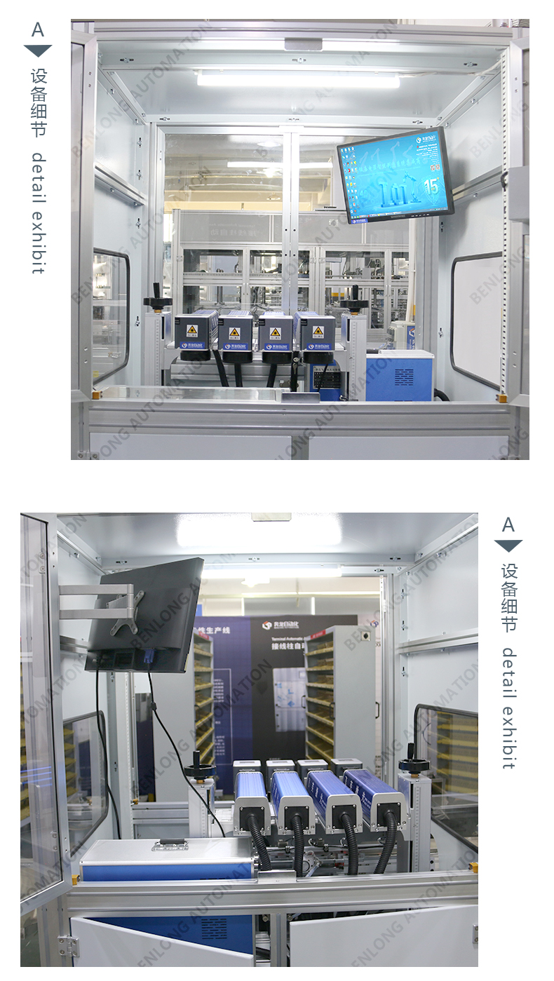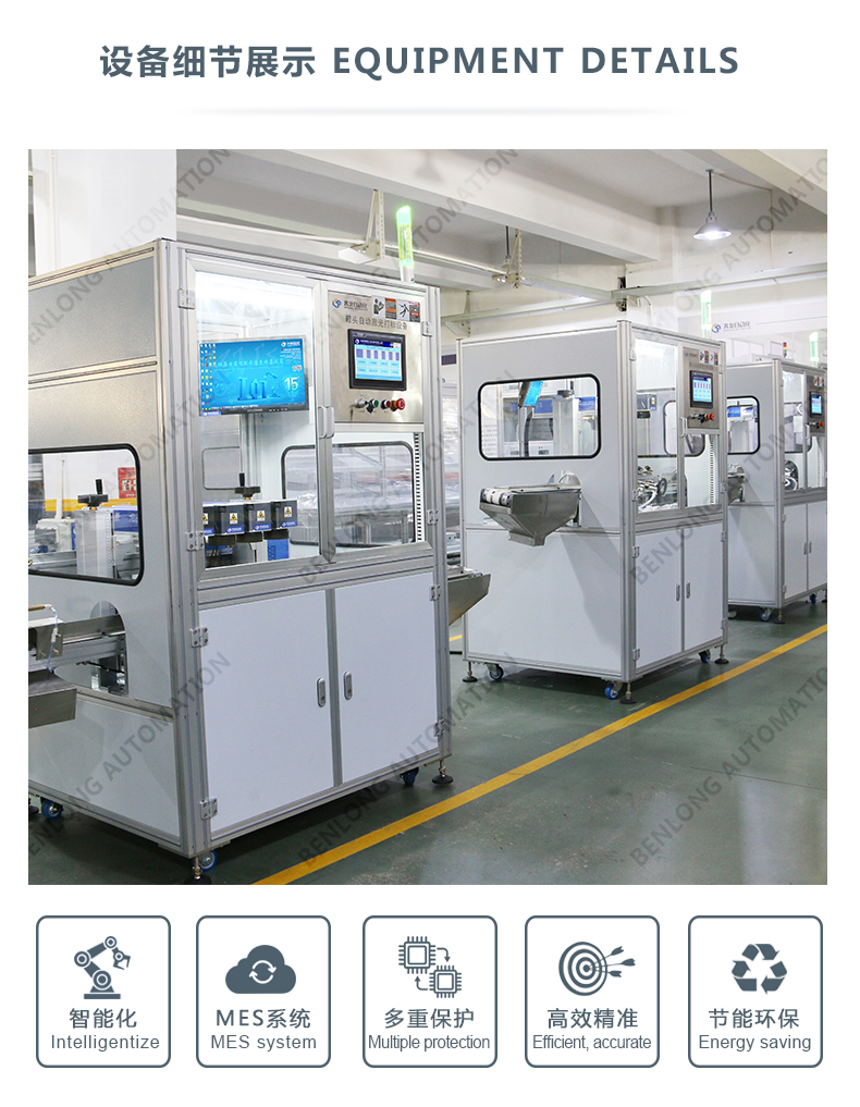 具有自動(dòng)上料、精密加工、激光打標(biāo)、自動(dòng)下料、除塵、不良品區(qū)分、缺料報(bào)警等工序的在線監(jiān)測(cè)、實(shí)時(shí)監(jiān)控、