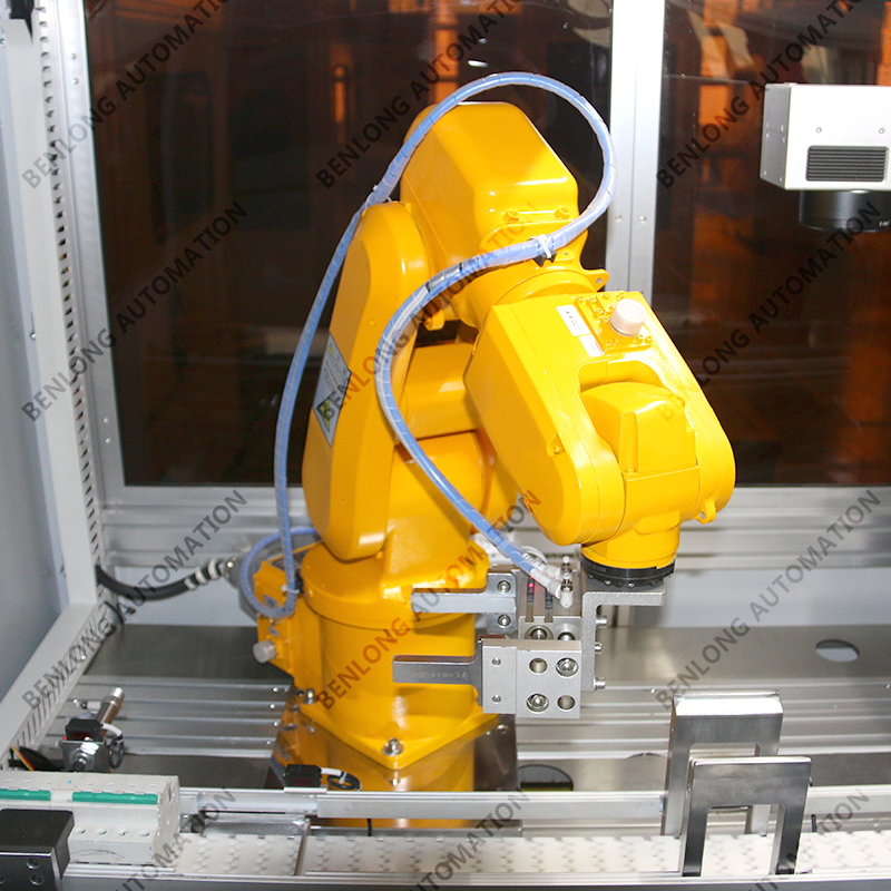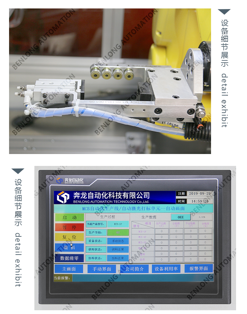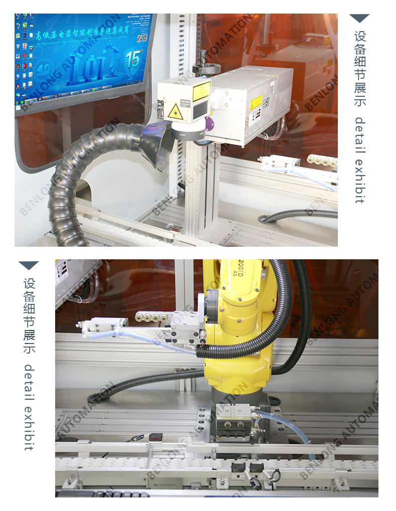 具有自動(dòng)激光打標(biāo)產(chǎn)品商標(biāo)、產(chǎn)品參數(shù)、CCD視覺(jué)檢測(cè)、不良品區(qū)分、缺料報(bào)警、自動(dòng)旋轉(zhuǎn)等工序的在線監(jiān)測(cè)、