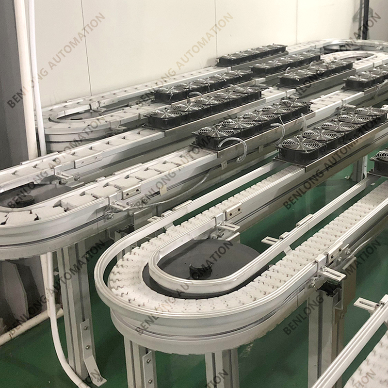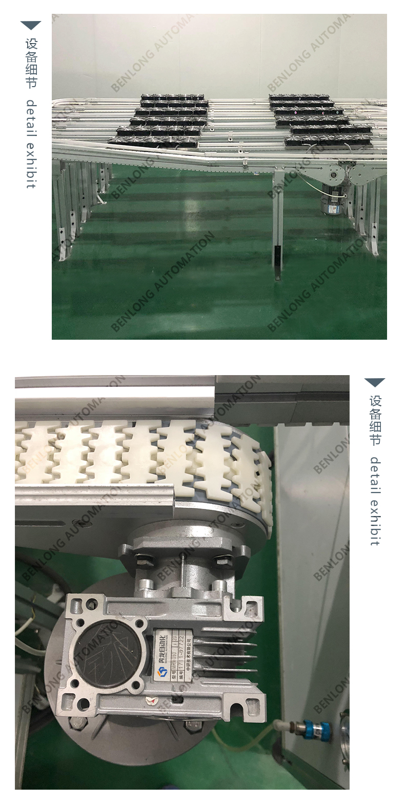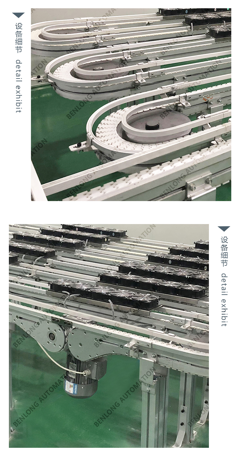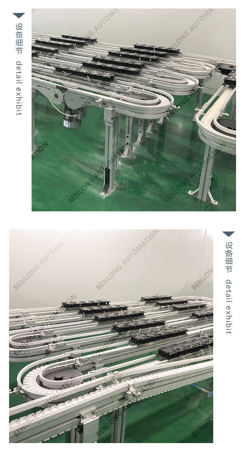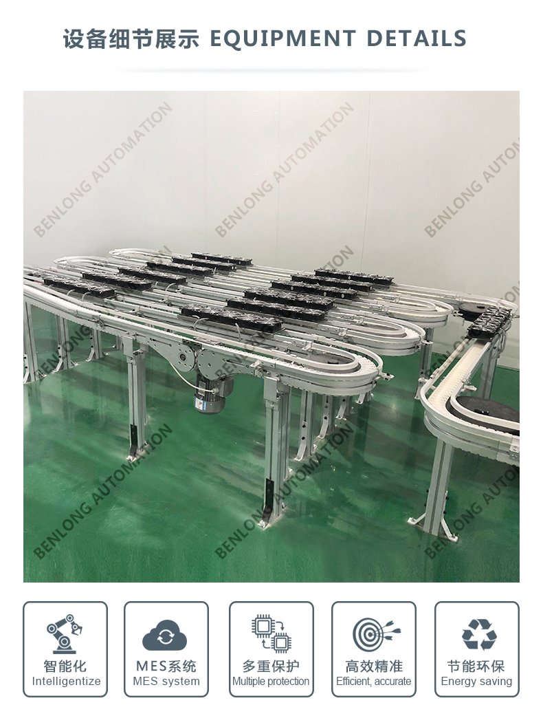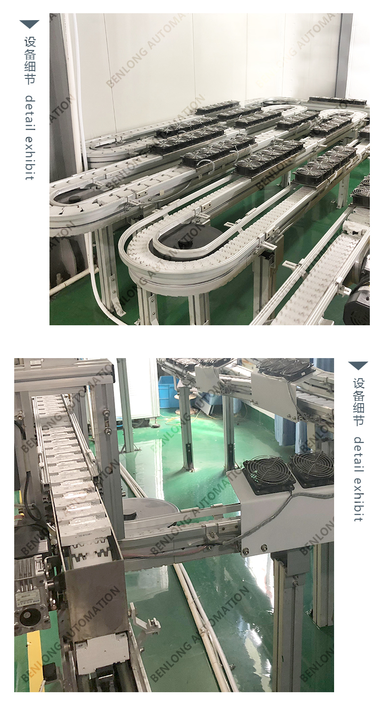 3、物流輸送選配:根據(jù)產(chǎn)品的不同生產(chǎn)工藝及要求,可以采用平面皮帶輸送線、鏈板輸送線、倍速鏈輸送線、提升機(jī)+輸送線、循環(huán)輸送線等方式實(shí)現(xiàn)。