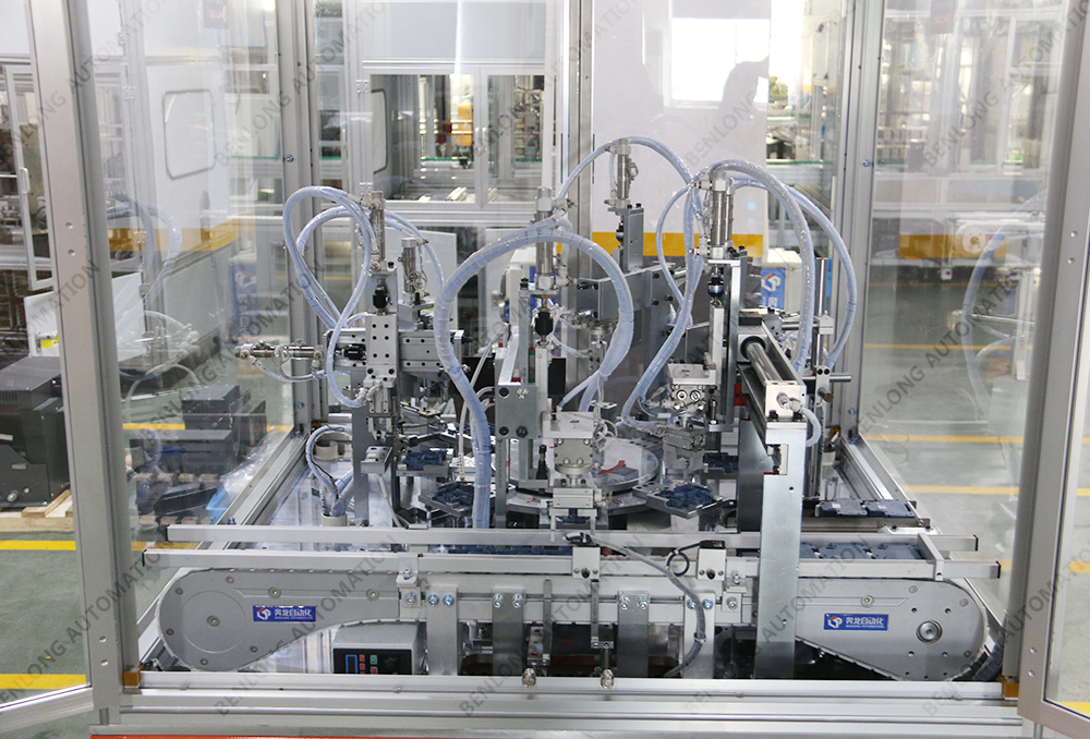 具有自動(dòng)上料、零部件成型、裝配、檢測(cè)、下料、缺料報(bào)警、90°旋轉(zhuǎn)等工序的在線監(jiān)測(cè)、實(shí)時(shí)監(jiān)控、質(zhì)量溯源、
