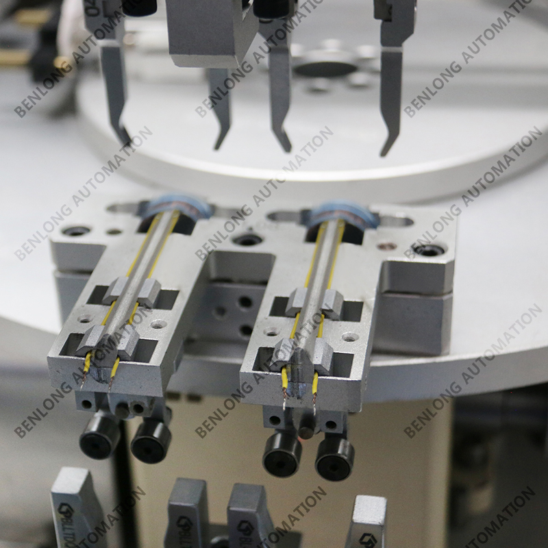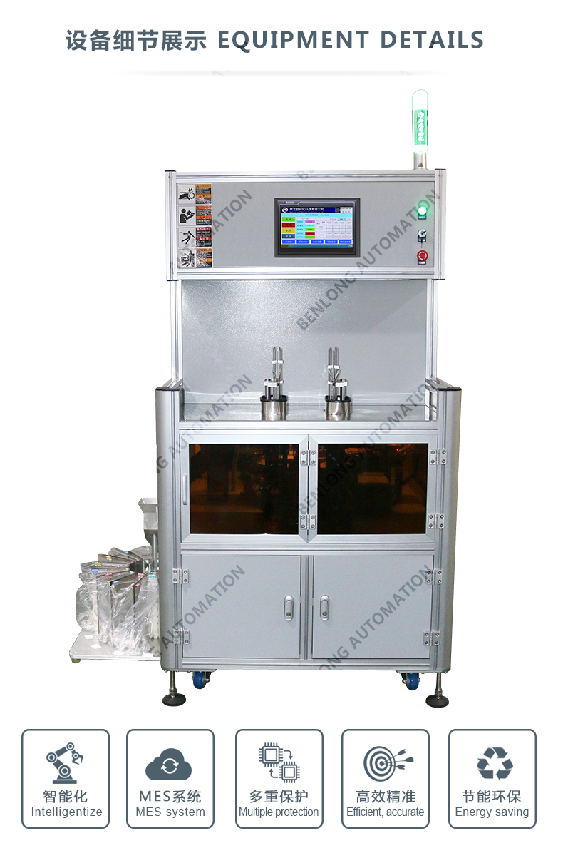 具有機(jī)器人+視覺自動(dòng)上料、線束成型、理線、1次/2次插芯漏電值檢測(cè)、單雙工位自動(dòng)切換、下料、區(qū)間值區(qū)分(共10個(gè)區(qū)≤20mA、