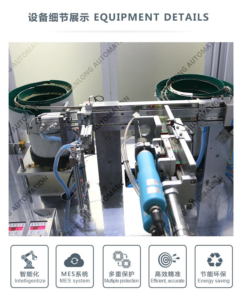 具有自動(dòng)螺母、螺絲上料組裝、扭矩識(shí)別、合格不合格區(qū)分、下料、包裝工序的裝配、在線檢測(cè)、實(shí)時(shí)監(jiān)控、