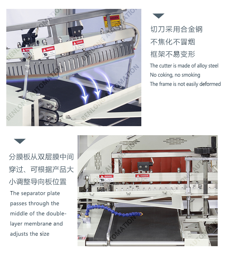 作業(yè)方式:人工放料或配合機(jī)械手自動(dòng)放料,自動(dòng)感應(yīng),自動(dòng)封切。
