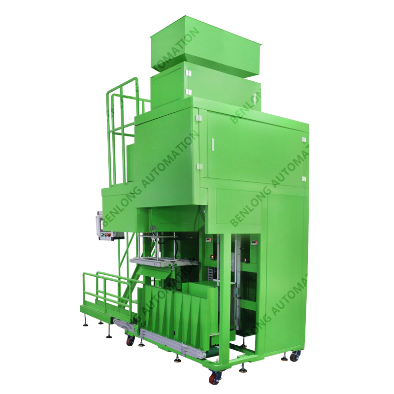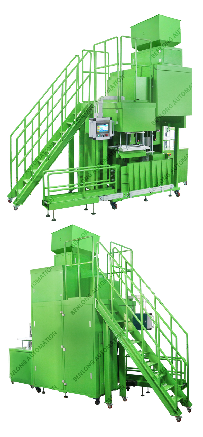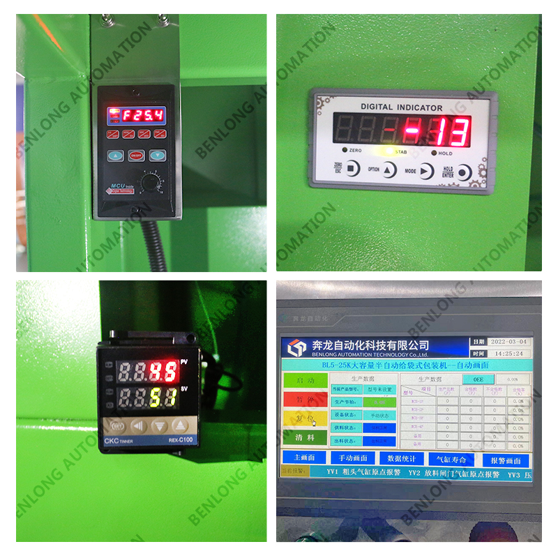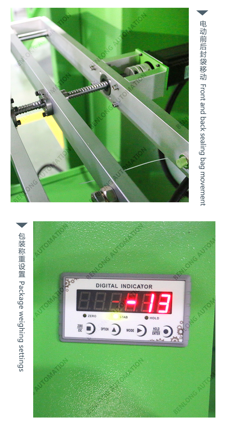 人工套袋/自動套袋,自動稱重,自動投料,自動檢重,自動真空,自動封口;自動出包。