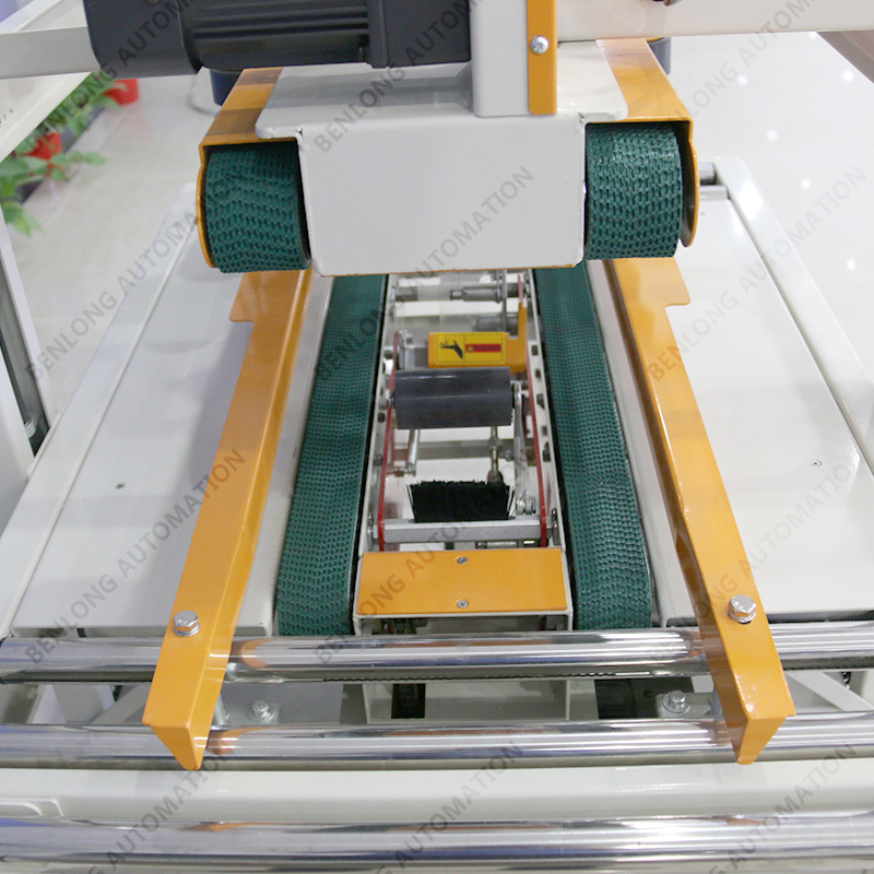 人工放料或其他包裝設(shè)備出料口自動放料,自動封箱。