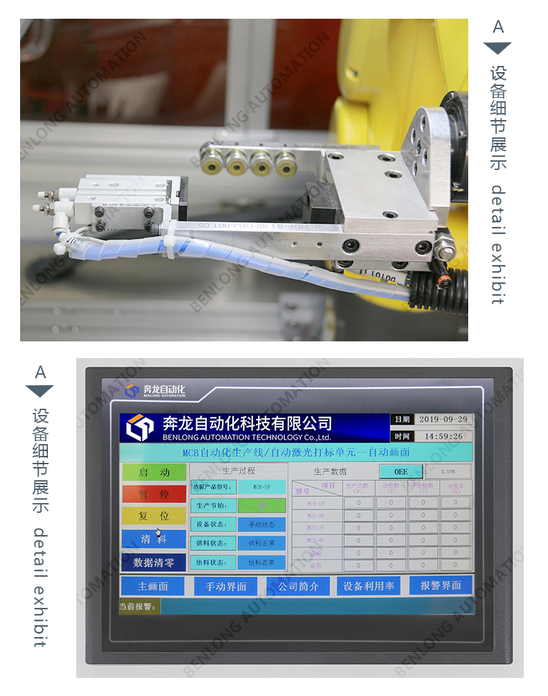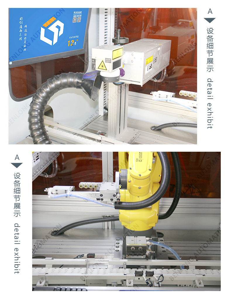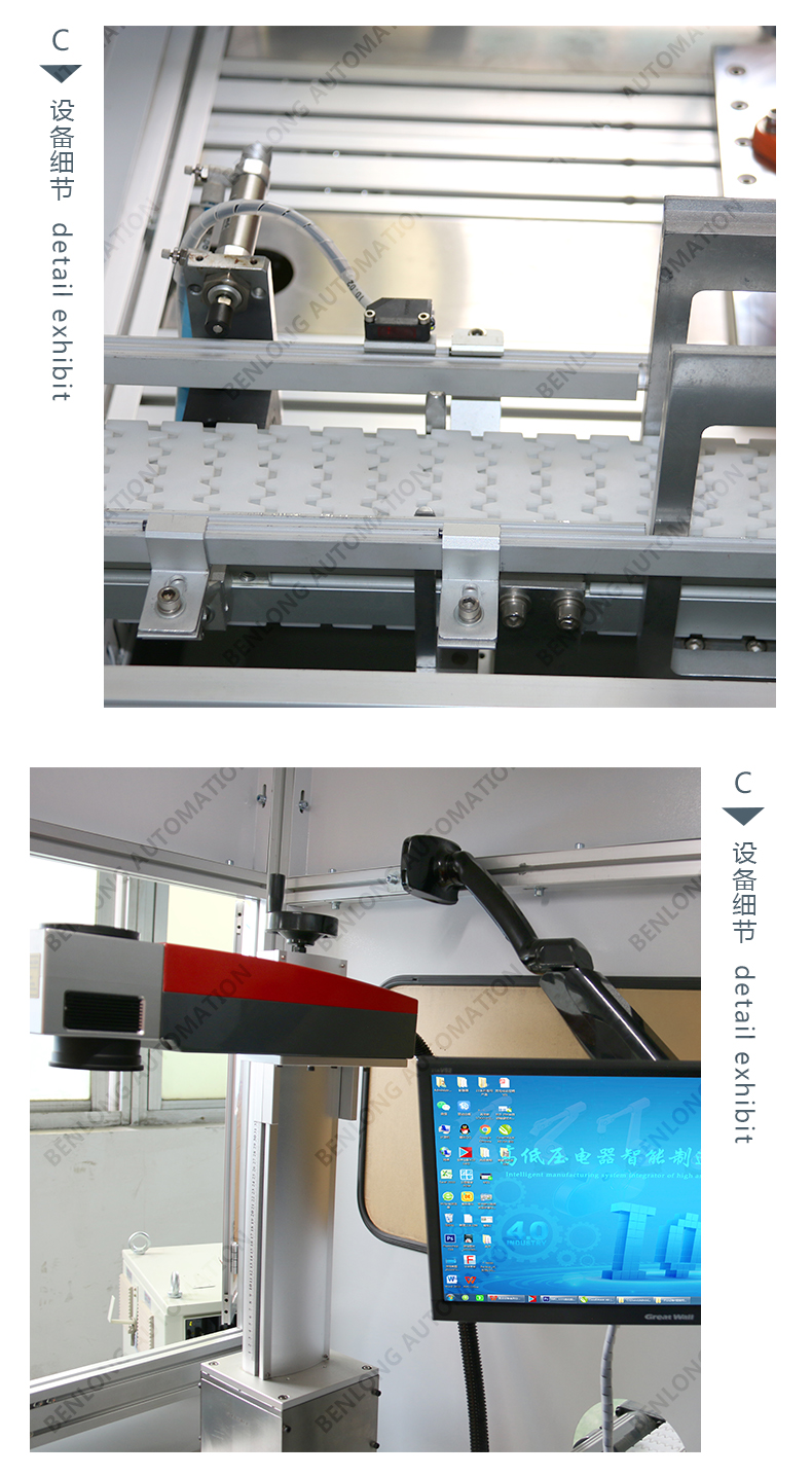 具有自動(dòng)激光打標(biāo)產(chǎn)品商標(biāo)、產(chǎn)品參數(shù)、CCD視覺(jué)檢測(cè)、不良品區(qū)分、缺料報(bào)警、自動(dòng)旋轉(zhuǎn)等工序的在線監(jiān)測(cè)、實(shí)時(shí)監(jiān)控、質(zhì)量溯源、條碼識(shí)別、