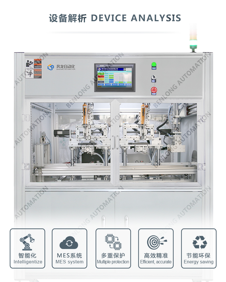 具有自動(dòng)裝配上蓋、中蓋螺絲、自動(dòng)檢測(cè)扭矩、不良品區(qū)分、下料、缺料/滿料報(bào)警等工序的在線監(jiān)測(cè)、實(shí)時(shí)監(jiān)控、質(zhì)量溯源、條碼識(shí)別、