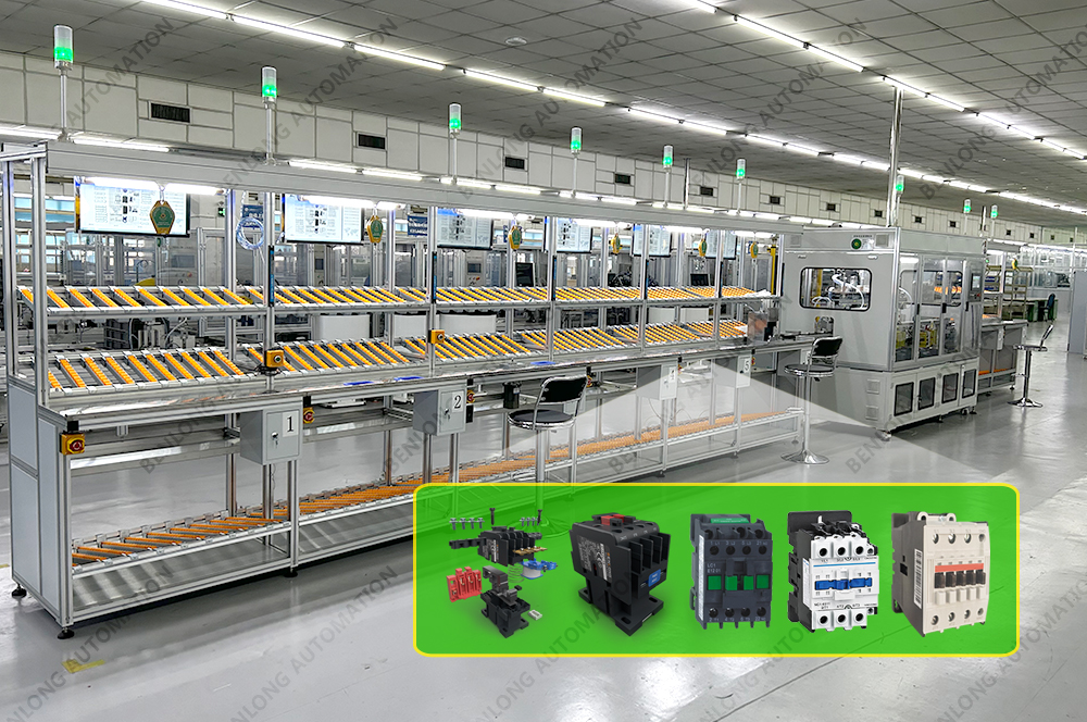 具有自動(dòng)上料、插芯裝配、底座裝配、主輔靜觸頭裝配、人工裝配寶塔彈簧、鎖上下蓋螺絲、鎖瓦片螺絲、通斷、耐壓、