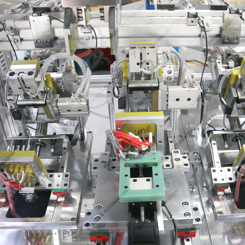 具有自動(dòng)上料、插芯裝配、底座裝配、主輔靜觸頭裝配、人工裝配寶塔彈簧、鎖上下蓋螺絲、鎖瓦片螺絲、通斷、耐壓、功耗、前傾吸合、