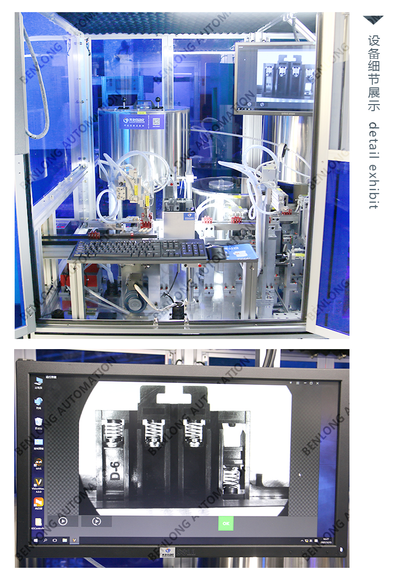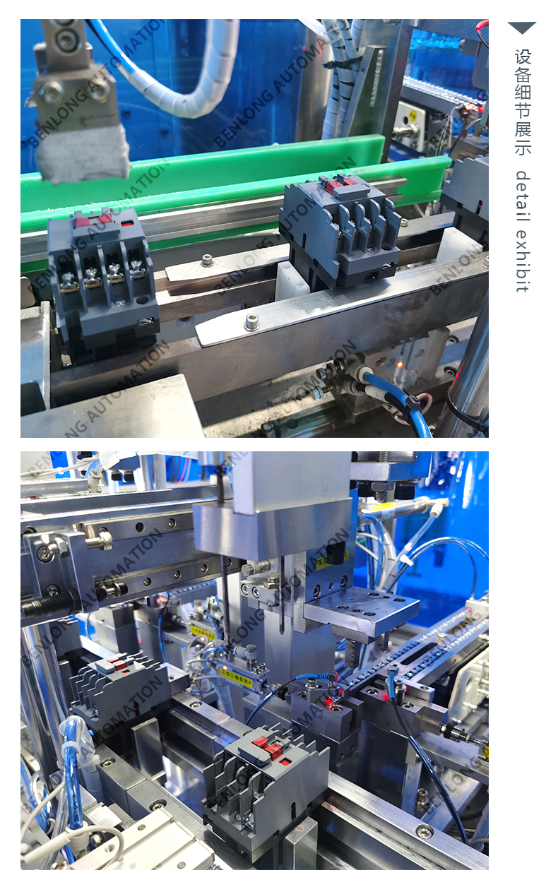 具有自動(dòng)上料、插芯裝配、底座裝配、主輔靜觸頭裝配、人工裝配寶塔彈簧、鎖上下蓋螺絲、鎖瓦片螺絲、通斷、耐壓、功耗、