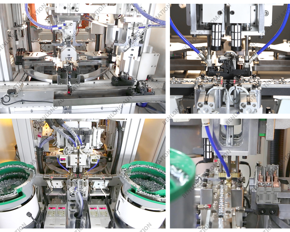 具有自動裝配接線柱螺絲、自動檢測扭矩、不良品區(qū)分、下料、缺料/滿料報(bào)警等工序的在線監(jiān)測、實(shí)時(shí)監(jiān)控、質(zhì)量溯源、