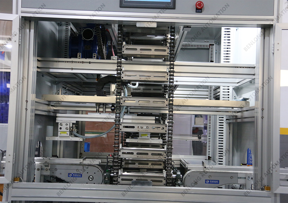 具有自動上料、螺旋循環(huán)冷卻或立體庫位循環(huán)冷卻、下料、溫度分析、缺料報警、90°旋轉(zhuǎn)等工序的在線監(jiān)測、