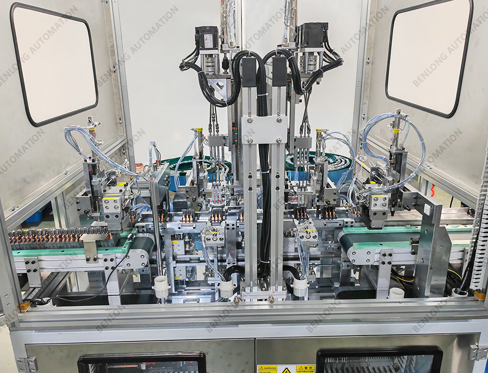 具有自動(dòng)裝配接線柱螺絲、自動(dòng)檢測(cè)扭矩、不良品區(qū)分、下料、缺料/滿料報(bào)警等工序的在線監(jiān)測(cè)、實(shí)時(shí)監(jiān)控、質(zhì)量溯源、條碼識(shí)別、關(guān)鍵元器件壽命監(jiān)測(cè)、